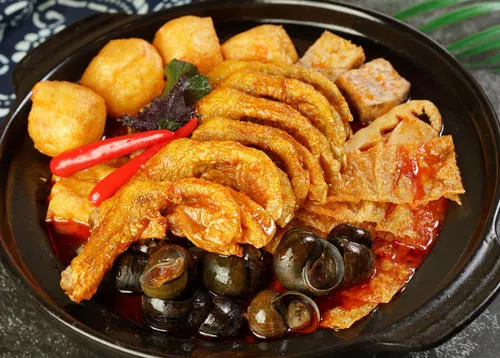 田螺鸭脚煲 田螺鸭脚煲是一道广西特色风味名菜,在南宁、柳州、桂林、柳州等地比较常见,属于桂菜。螺蛳鸭脚煲选用广西本地田螺和鸭脚制作而成,是广西大街小巷常见的特色菜,也是广西一道风味独特的家常菜。螺蛳鸭脚煲入选广西商务厅评选的“20道广西桂菜特色名菜”名单,还被中国烹饪协会评选为“中国菜”广西十大经典名菜。【详细】中文名:田螺鸭脚煲主要食材:鸭脚,田螺分类:宵夜