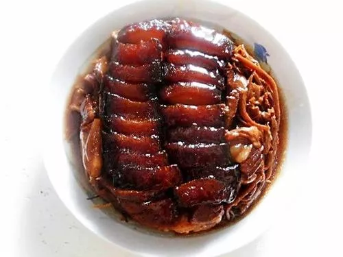 柚皮渡笋扣 柚皮渡笋扣是广西玉林容县一道历史悠久的汉族传统佳肴,是利用柚子皮,配以五花猪肉及调料,精心烹调而成的名菜。柚皮渡笋扣选材讲究,工艺复杂,家常的做法用八渡笋、柚子皮和五花肉一起制作的制作而成,柚子皮经过清水煮和浸泡后,再以调高汤煨入味,海绵状的柚子皮能饱吸滋味;八渡笋切片,一片笋、一片柚子皮,间隔放入碗中,加少许高汤上锅蒸熟,出锅后倒扣摆盘即可。柚皮渡笋扣被广西商务厅评为“20道广西桂菜特色名菜”,还被中国烹饪协会评选为“中国菜”广西十大经典名菜。