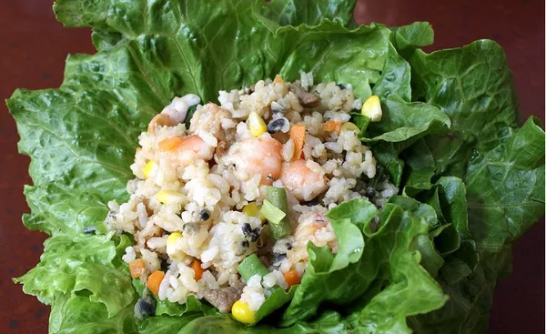 敖汉小米菜包 敖汉小米菜包是赤峰市敖汉旗特色美食小吃,是用菜叶把米饭和酱料、菜包进去一起吃的美食,也是赤峰市著名的特色美食之一。敖汉小米菜包不同于普通的大米菜包 ,是用有着“敖汉杂粮,悉出精品”之称的敖汉小米制作而成,其做法简单,是将敖汉小米蒸成小米饭,取一片菜叶,刷上酱,放上小米饭,再在饭上放好自己喜欢的肉、菜和香菜包起来,一个美味的菜包就做好了。敖汉小米菜包风味纯正,香软可口,是平衡膳食、调节口味的理想食品,也是赤峰独有的特色味道。小米饭菜包还被内蒙古自治区文化和旅游厅评为“赤峰十二峰味”美食之一。