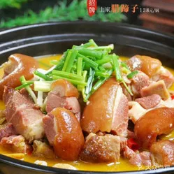 腊蹄火锅 原味腊蹄火锅是宜昌土家族一道特色菜,也是待客菜里面的大菜,2017年入选宜昌商务局主办的“宜昌十大名菜”榜单。一头猪也只有四个蹄子,日晒风干或者秘制烟熏让肉质更有嚼劲,连肥肉都不会过分油腻,加上莲藕或者萝卜来一锅,十足的腊味。而腊蹄子最佳伴侣就是干土豆了,在夏季炎热的天气下将煮熟的小土豆进行暴晒,放到秋季冬季来食用,煮在火锅里相当有滋味。浓郁的咸香味儿,带着淡淡的烟熏气息,一道土家腊猪蹄,是每位宜昌游子最思念的家乡味道。