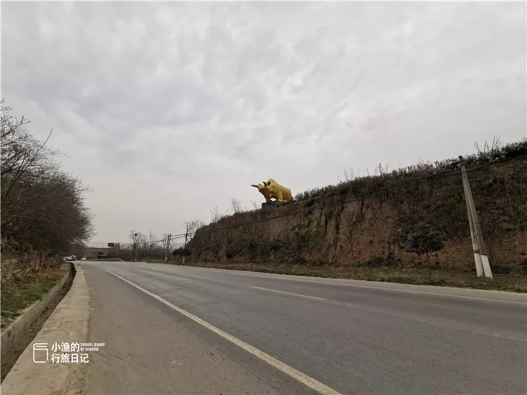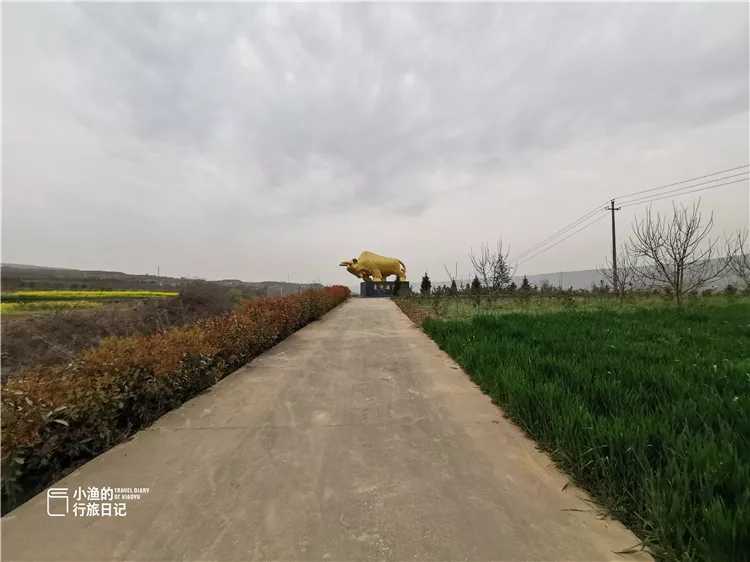 在前往杏花谷的312国道边上,我隔着车窗看见一道土坡。这样的黄土台塬在西安周边很常见,本来并不起眼。不过土坡上有一头金光闪闪的金牛高高耸立,看起来颇有气势。土坡旁还竖着一块全国重点文物保护的石碑。这道并不起眼的土坡到底是什么地方呢?