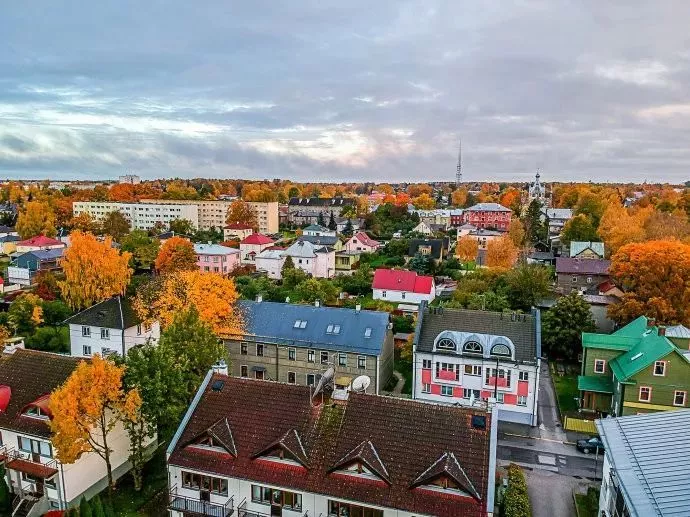 这天醒来,发现外面没有下雨,我拿着无人机来到旁边的停车飞了一圈。塔尔图整座城市在秋的盛装打扮下,非常美!
