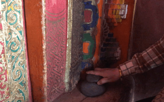 大家都答对了吗,没错,就是用来敲门。大门用实木制作,敲门时发出的声音低沉,众僧在殿堂念经、打坐时不易听见,而石头敲击的声音清脆且悠长,易引起注意(僧人闭关时,送饭人也是用此方法告知闭关的僧人饭已送到)。