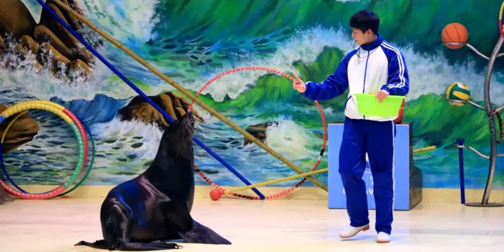 演出的压轴是海豚表演:海豚时而轻轻舞蹈,时而跃出水面,还有高难度的顶球、空中飞人等精彩现场,海豚独特的歌声,更是帮助无数孩子走出自闭症的阴霾。