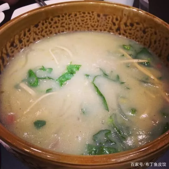 2、德州羊肠汤:羊肠汤又名清血肠。是德州特产。相传羊肠汤起源于清光绪年间,德州的城北就住着一满族大户,后世称他为吴三麻子,据传羊肠子最早就是他们家私家享用的美食。后来吴三麻子家道中落,为了维持生计,他只好担起挑担,去街头卖羊肠子。其做法是:羊血、淀粉、香油、姜汁、胡椒粉等佐料成粥状,灌入新鲜肠衣内煮熟。吃的时候在将煮熟的羊肠子放进羊骨熬制的老汤,在碗内割制成小段加上胡椒粉、香菜末即可。
