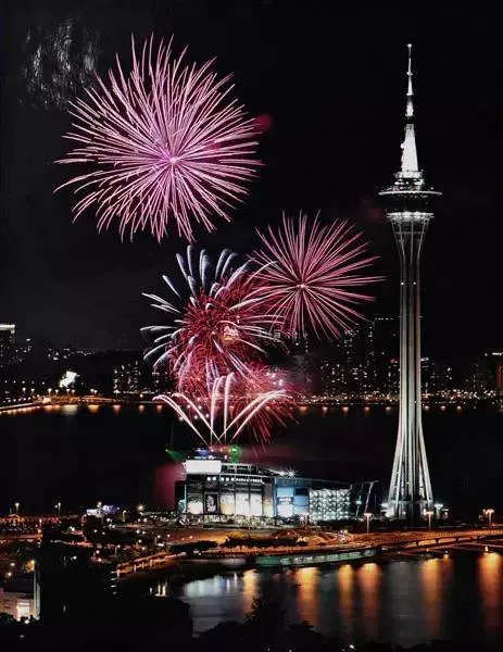 一幅幅绚丽璀璨的烟花图案绽放在澳门的夜空,夹杂着人群的欢呼喝采声,为你打造既温馨又浪漫的动人情境。