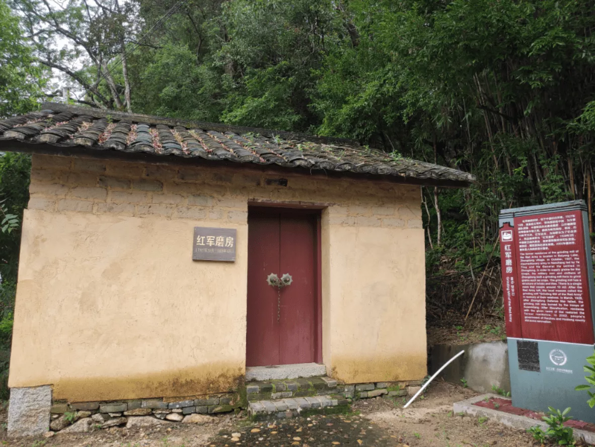1927年10月12日,由董朗率领的南昌起义军第十一军第二十四师余部1200多人到达高潭镇中洞后。当时的粮食供给,成为部队建设、迅速恢复形成战斗力的急时之需。为方便部队供粮,中洞军民在此搭起了一排土坯瓦房,安装上磨谷的陇磨、臼对,把稻谷加工成大米,解决了部队大米供应的实际问题。红军走后,当地群众为了纪念亲人,将这磨房称之为“红军磨房”。