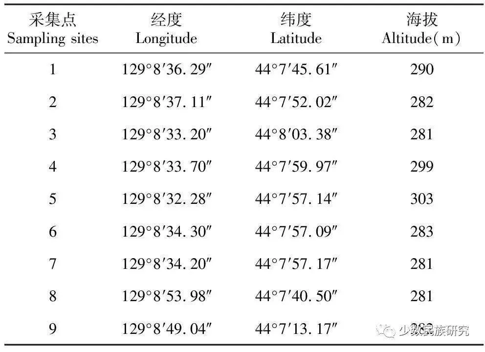 表1采样点经纬度信息