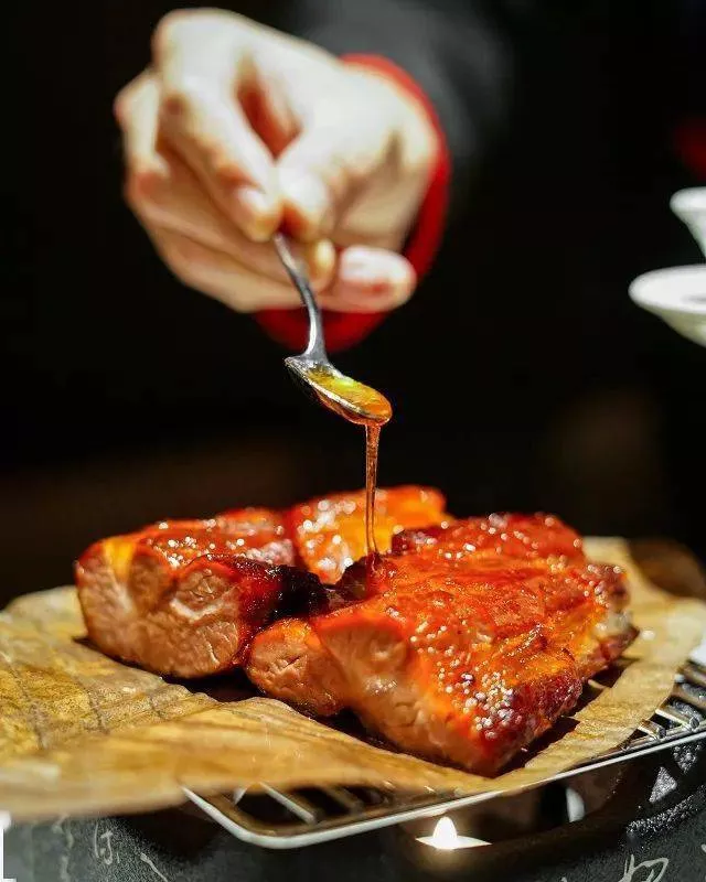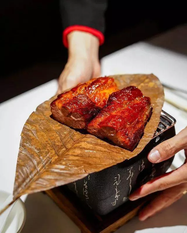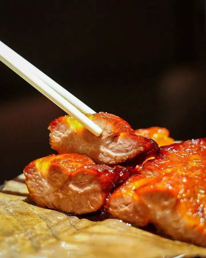 作为日本飞驒高山的特色菜,朴叶在下方的热力烘烤下,会将特别的草本气味传到蜜汁叉烧内。