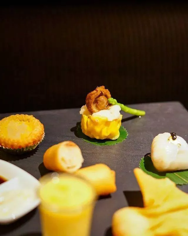 MOP198 炸酿松叶蟹盖 MOP168 朴叶烧蜜饯叉烧 MOP128 迷你燕窝蛋挞 MOP42 MOP44 人参鸡汤小笼包 MOP48 太极翡翠黄金素菜羹 MOP168木鱼丝烧卖