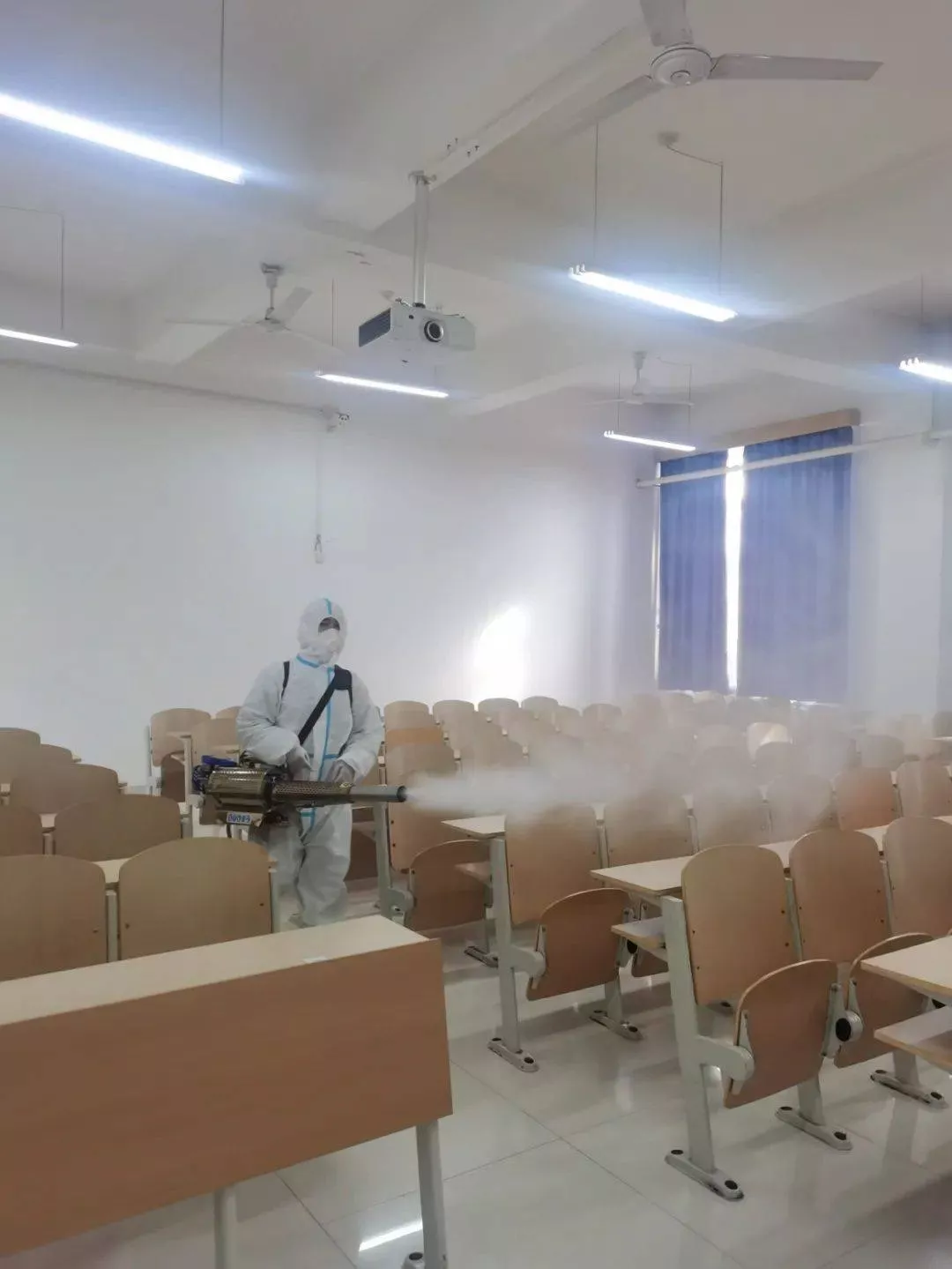 当日渭水校区室内消杀面积总计14万㎡,室外消杀面积38.3万㎡,总消杀面积达52.3万㎡。与此同时,后勤处严格落实工作服务人员的核检工作,做好“每日一检”、“应检尽检”,为考生提供安心的考试场所及服务。