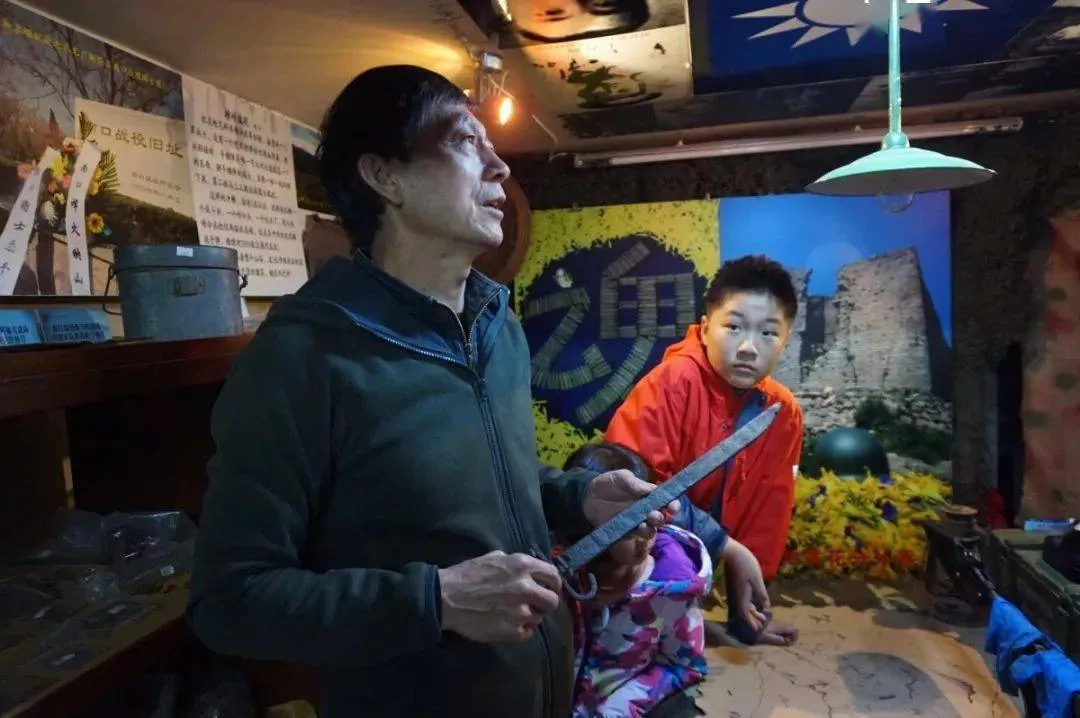 不大的地方杨老师却能放下几千件 在战场遗址找到的实物,每一件都有一个编号,每个藏品都有自己的地方,等着被人问起。我和 一个男孩儿都很好奇杨 馆长找到的日本军人的 物件。其中有一块身份牌,上面铸写着这位日本军人的部队和个人信息。