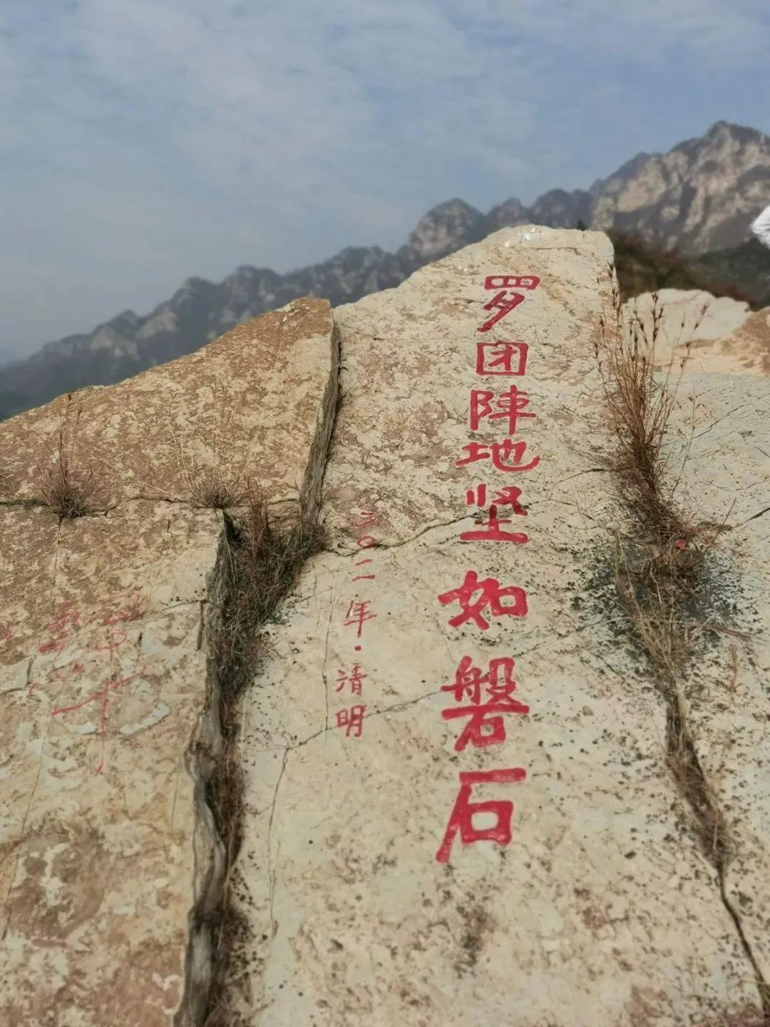 杨老师带 领我们在英雄们当年战斗的地方向他们致敬,在制高点上他刻下“罗团阵地坚如磐石”。就如同在采访中他所说的,他做这些事,是希望 让后人来到这里时 能够看到、知道更多关于那场战役的事,如此,他便觉着有了意义。
