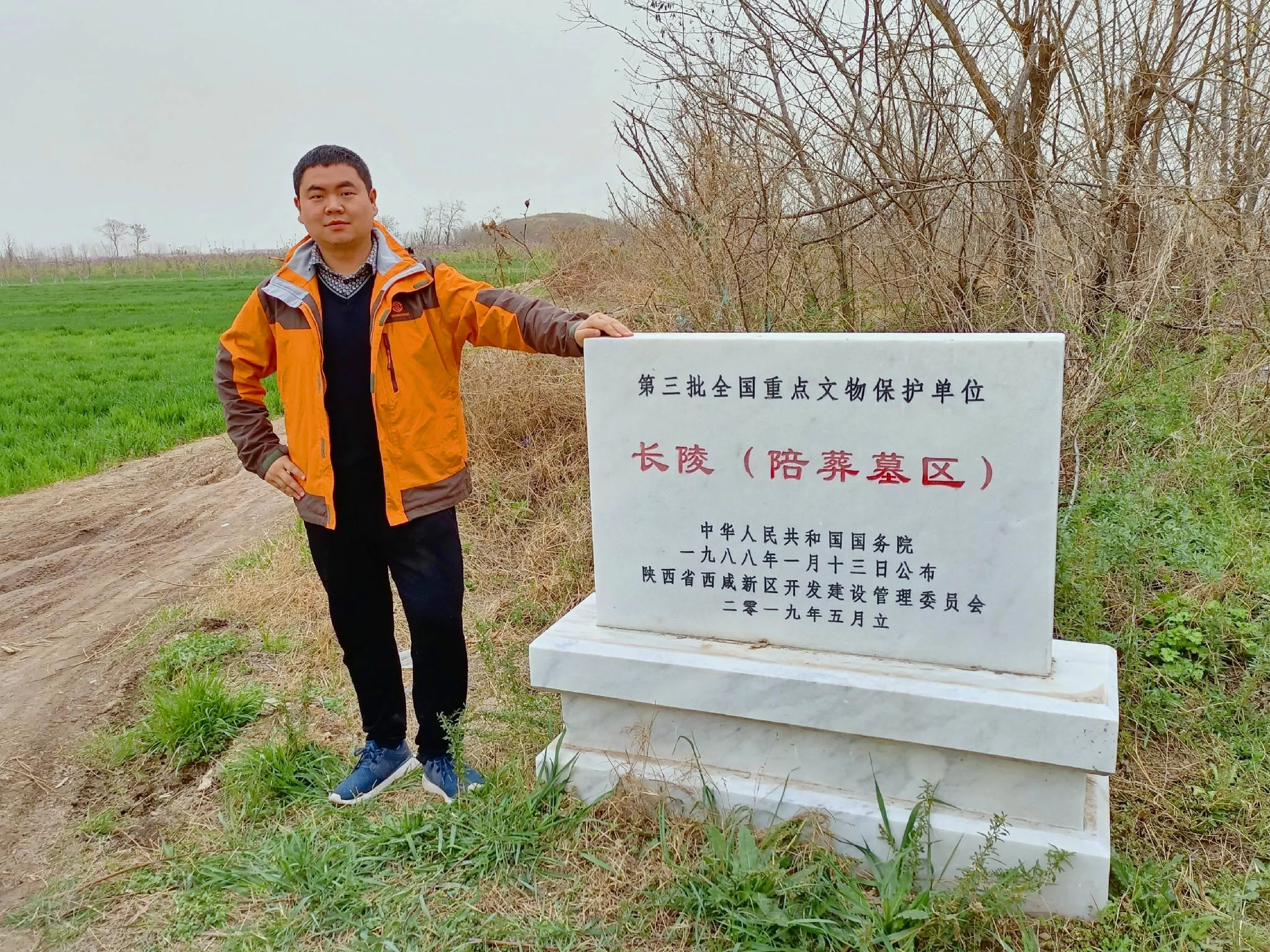 我们沿着公路,经过徐家寨村,向南快到机场公路的时候,看到路边新立的“国保”碑,告诉大家:这里是长陵陪葬墓区。于是,我操作无人机,在路边升空后,向东飞到陪葬墓核心区。大量的陪葬墓冢依次呈现在眼前,眼花缭乱,应接不暇。