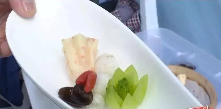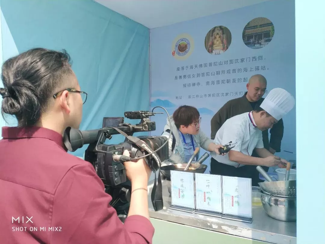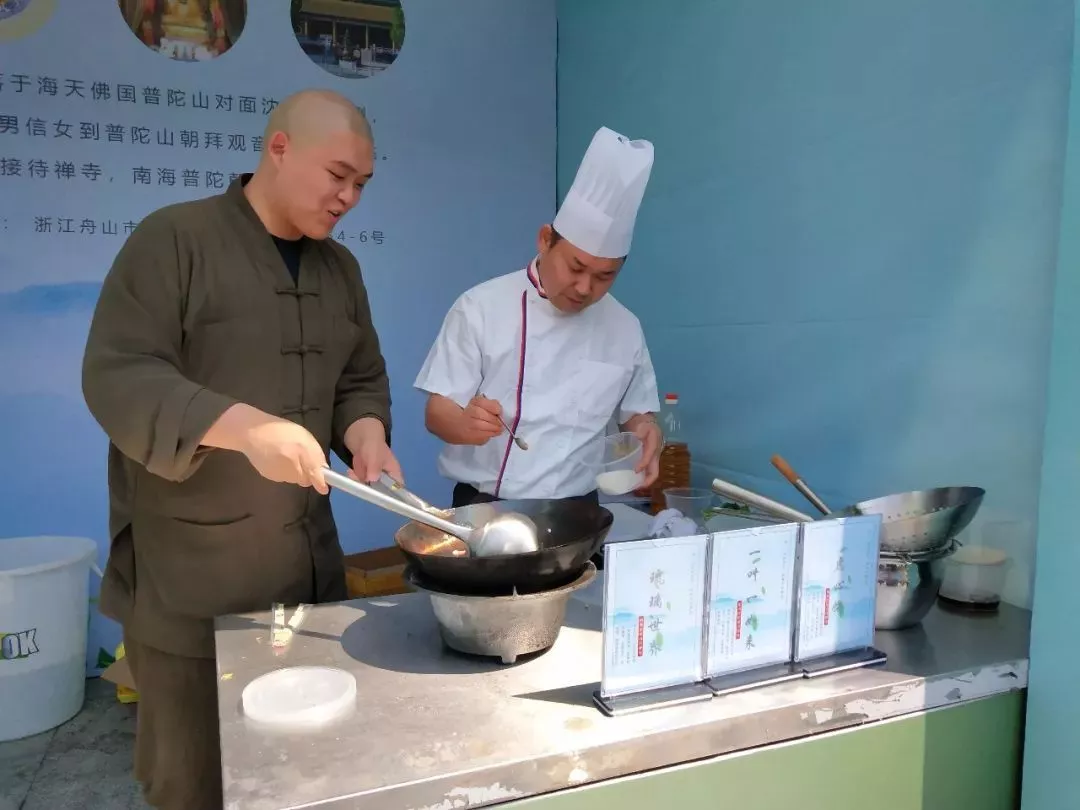 上午,活动主办方还邀请了中国佛学院普陀山学院参学会馆的大厨为观众现场展示自家拿手素食烹饪手艺。