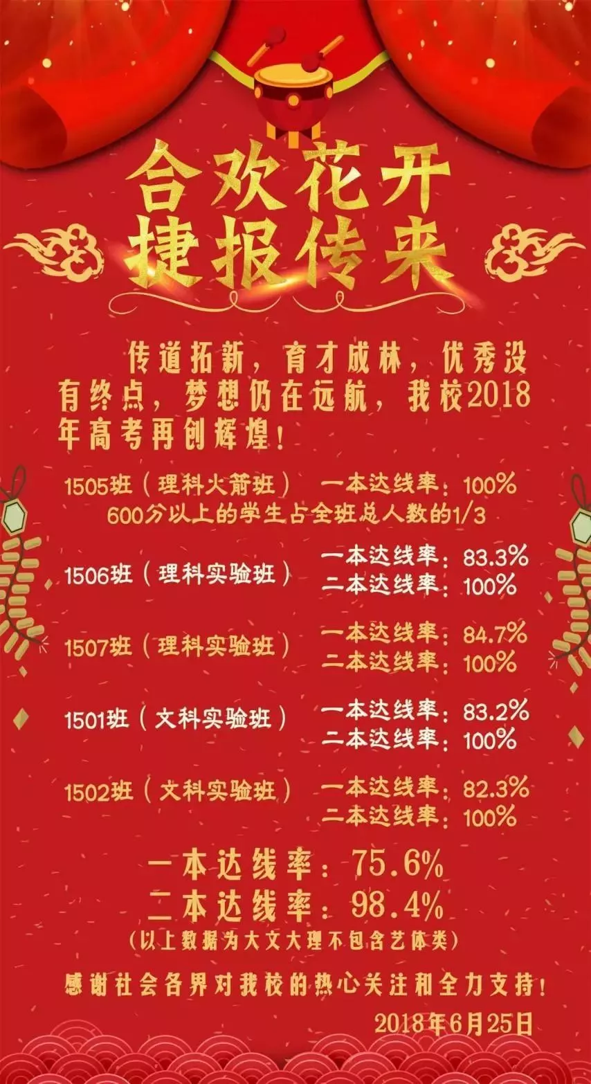 再来看一组数据,2017年高考:理科一本达线率73.8%,二本达线率95.2%。文科一本达线率71.2%,二本达线率98.5%。(数据来源于百度百科)