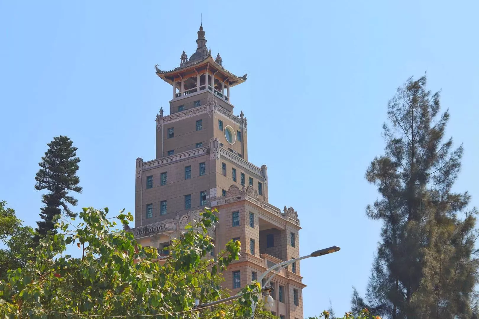 其中最具标志性的建筑要数南薰楼,由一座15层的主楼和两座6层的副楼组成,曾经一度是厦门第一高楼。立体的建筑层层叠叠,绿瓦飞檐,不管从哪一个方位看,都觉得南薰楼是集美学村最美的。南薰取自“南风之薰兮,可以解吾氏之愠兮”,以示陈嘉庚先生一生兴学造就后代的心愿。当然,他做到了,有着莘莘学子的集美学村依然繁荣,就是最好的证明。