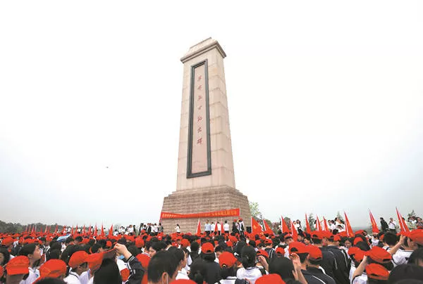 道县何绍基学校的1600余名师生瞻仰革命烈士纪念碑。本报记者 郭磊 摄