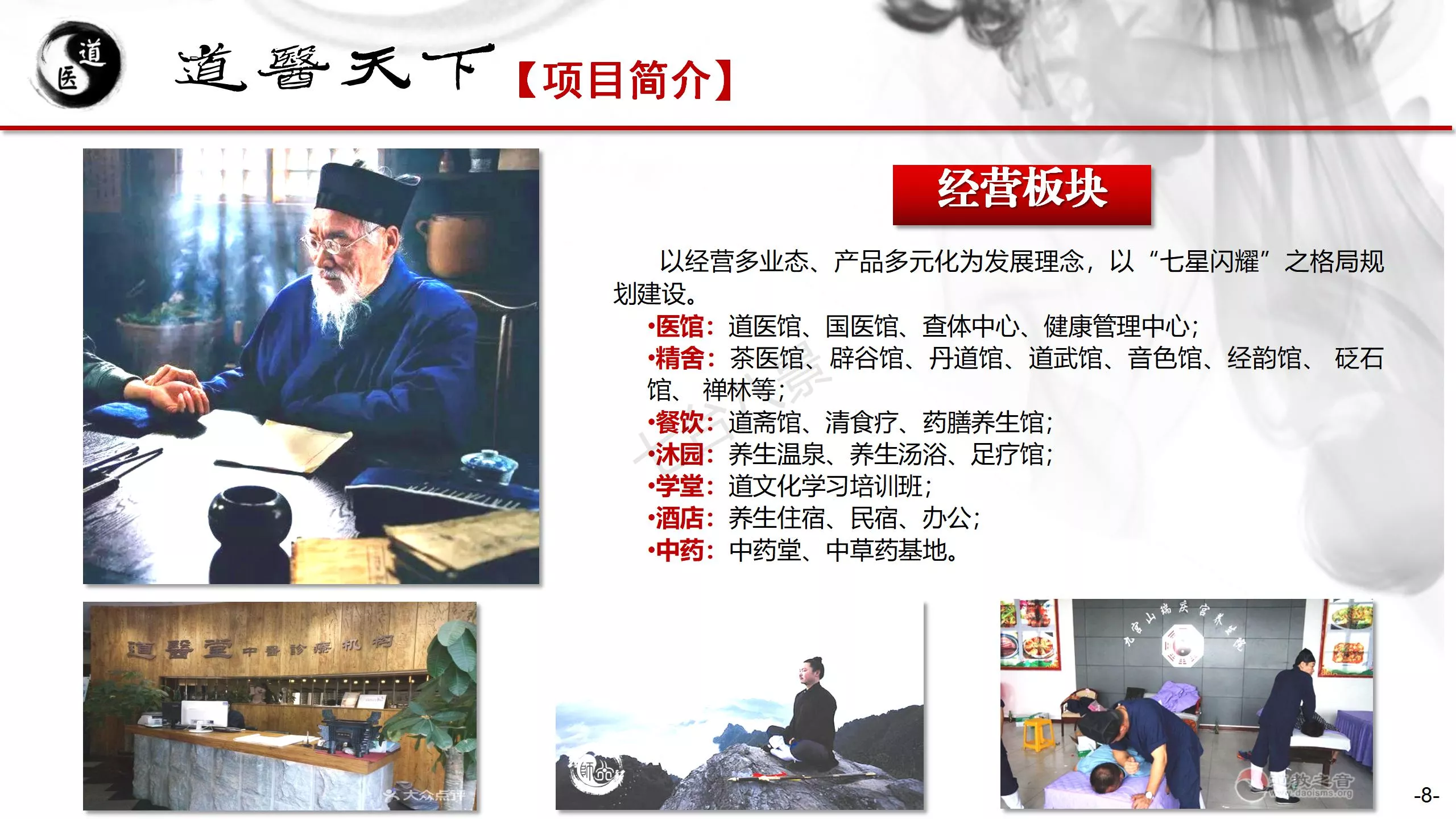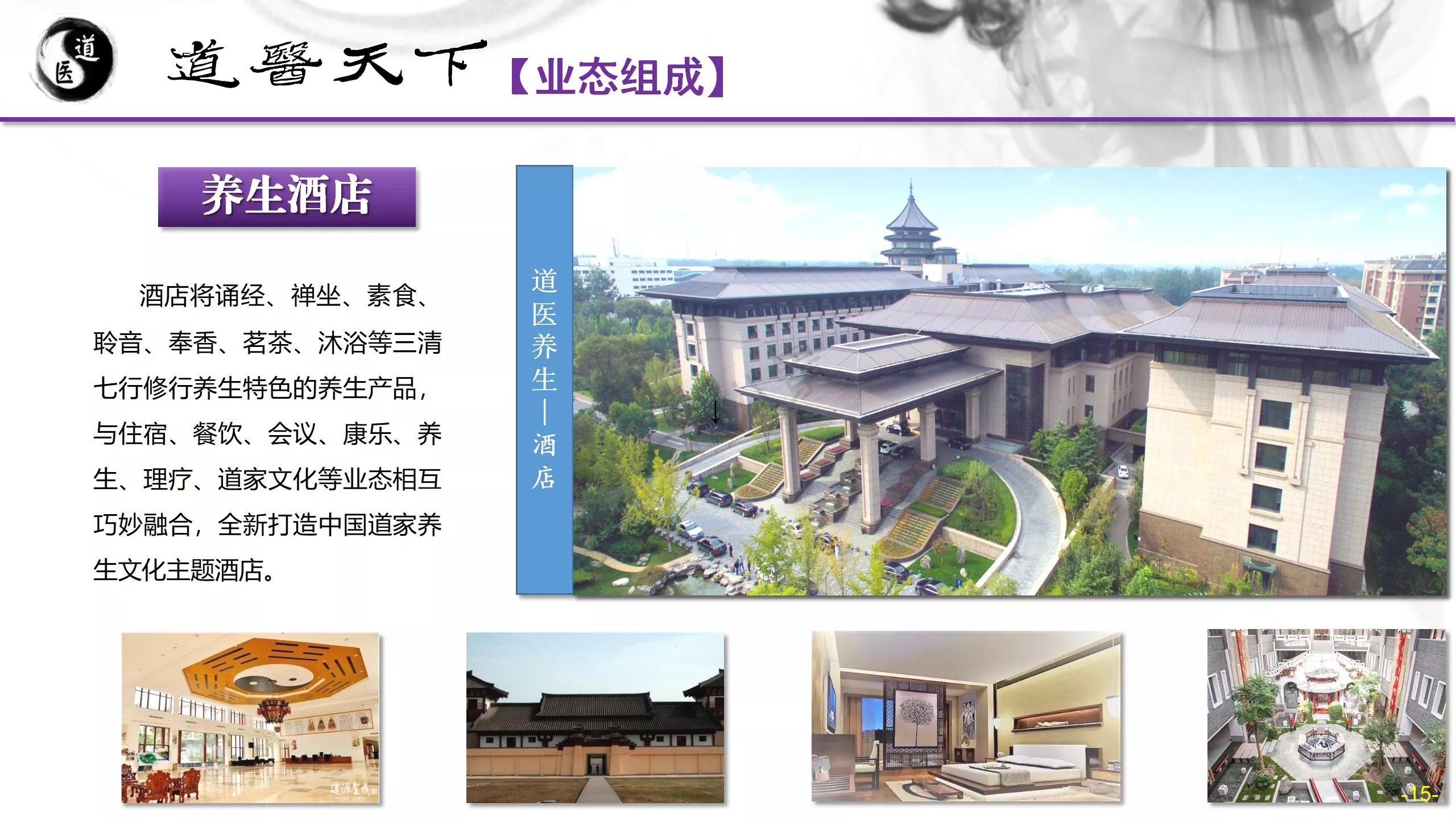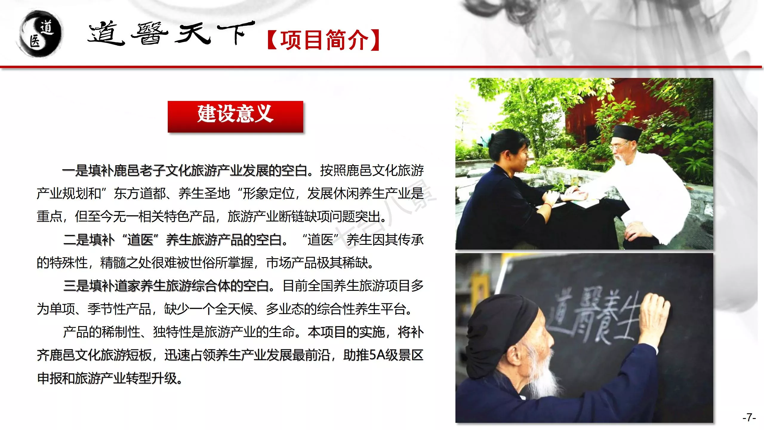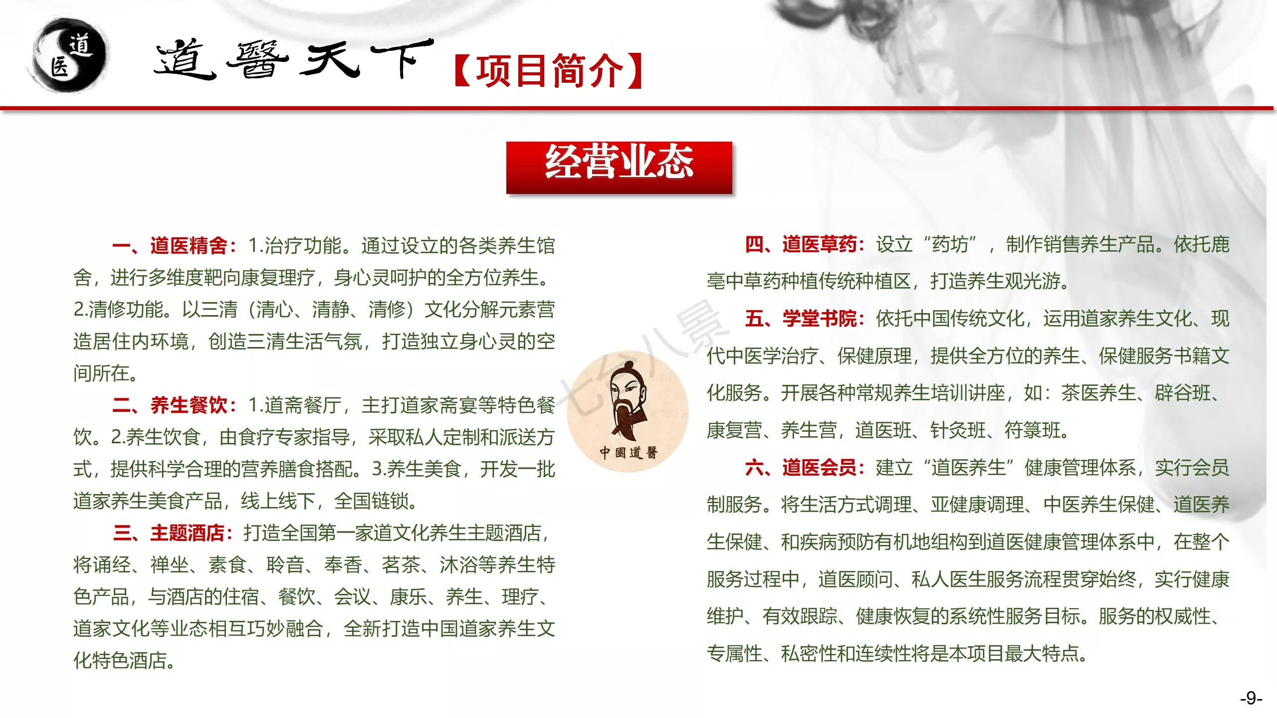 老子故里-鹿邑道医养生旅游基地:是以传播、体验道家养生理念为内容,以“道医养生”为特色,融入道家“五术”传统文化,打造世界首家以道家养生为特色,集“助眠+治疗+康养+修身+休闲”为一体的道家文化旅游体验综合体,现面向全国诚招合作运营商。