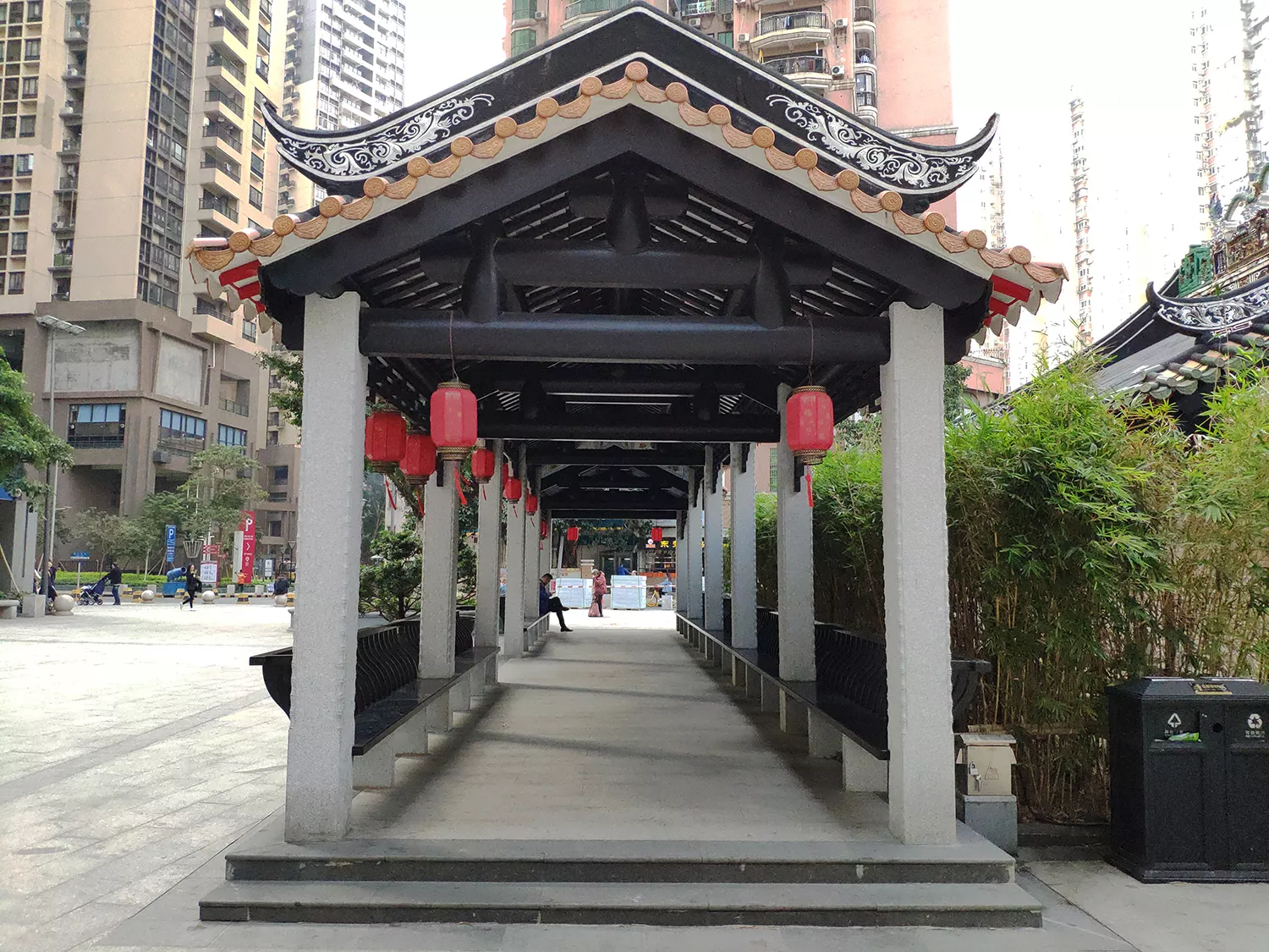 一座座建筑精美的祠堂以灰色为主色调,给人一种历史的沧桑感。祠堂中的盆景绿意盎然,给古色古香的祠堂增添了许多生命气息。本地村民在闲来无事的时候,会在这里打牌娱乐,祠堂中充满了欢声笑语。