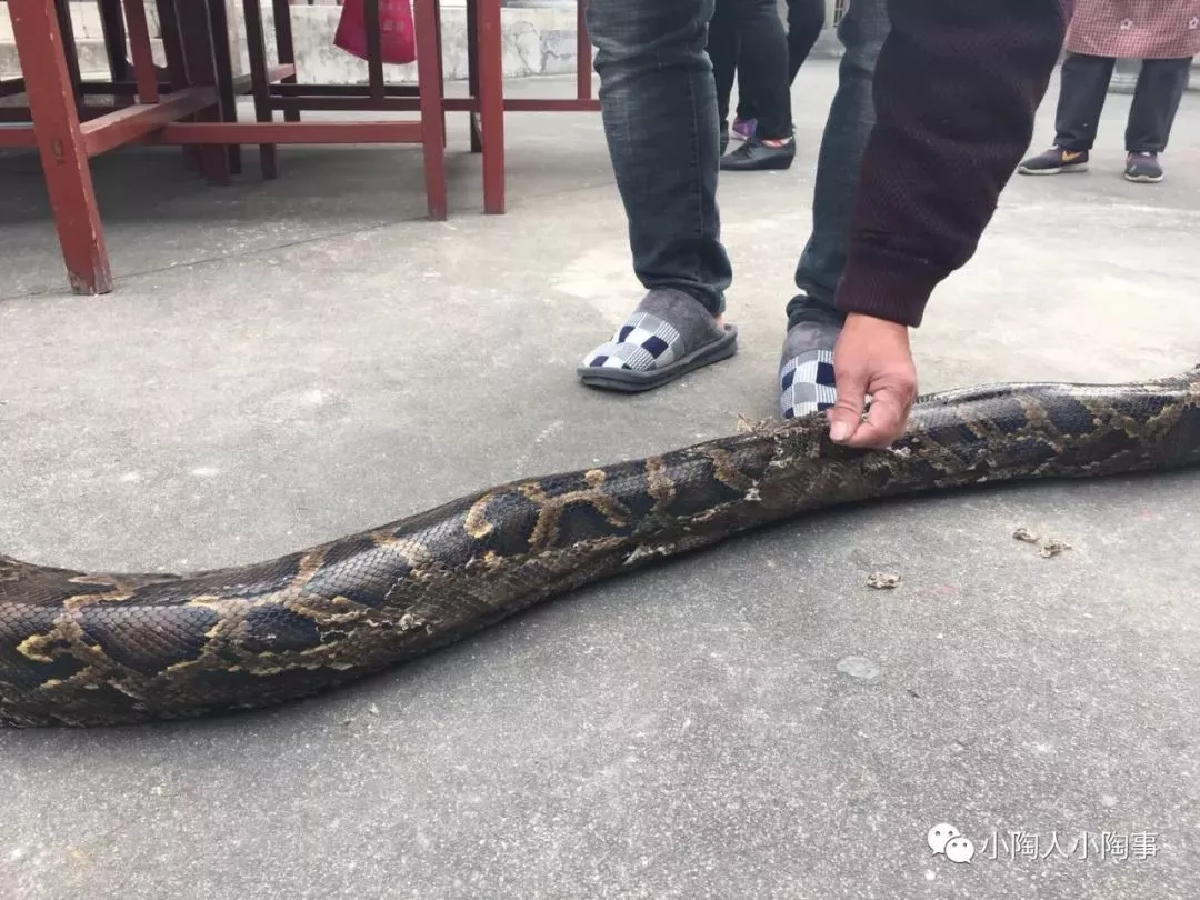 12月19日的小陶,是个晴朗的日子。一大早,簿雾轻柔地拥抱着小陶镇,数日前彻骨的寒意似乎消散了许多。才8点多,阳光的笑容就温和地露出来。应善良的坚村村民的要求,小陶林业派出所干警会同几位村民,携带昨日在坚村捕获的大蟒蛇,来到小陶劳动村的慈航寺,给放生前的大蟒蛇做法事,祈求大蟒蛇平安回归大自然,平安生长。法事之后,人们又为大蟒蛇称了体重。哇!足
