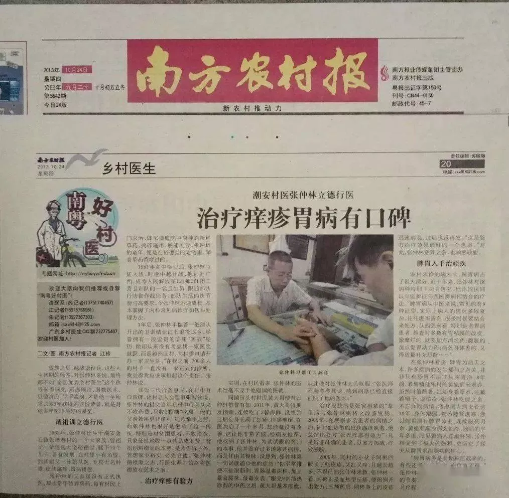 潮安村医张仲林,不忘初心为民福,痒疹胃病齐共鸣