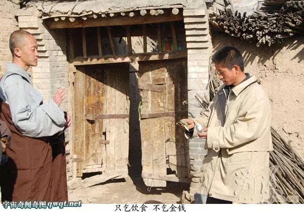 走出好远,后面有人大声说道:“看啊!那才是真正的出家人,连头都没有抬一下、、、”到某家乞食,一老头抬头不说话,掏出5元钱,递了过去。僧说:“出家人不要钱,素饭菜就行。”老人的手一时收不回去,愣愣的发呆之后,大喊一声:“快!多盛点饭” 。