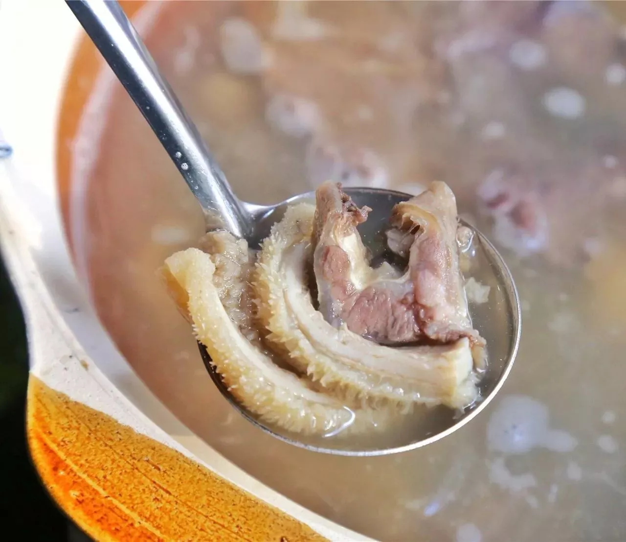 汤底是用牛骨每天现熬出来的,6小时的文火慢炖,浓浓的骨汤精华,入口就能喝得出来~