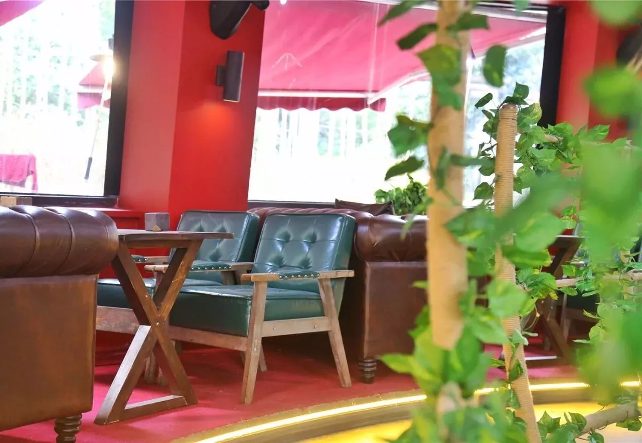 店内的陈设也不同于别家打边炉的港式风味,红色的墙面搭配深色系的皮质沙发,散发着英伦的优雅,还有绿植环绕着的篱笆墙,绝对是打边炉界的颜值担当~