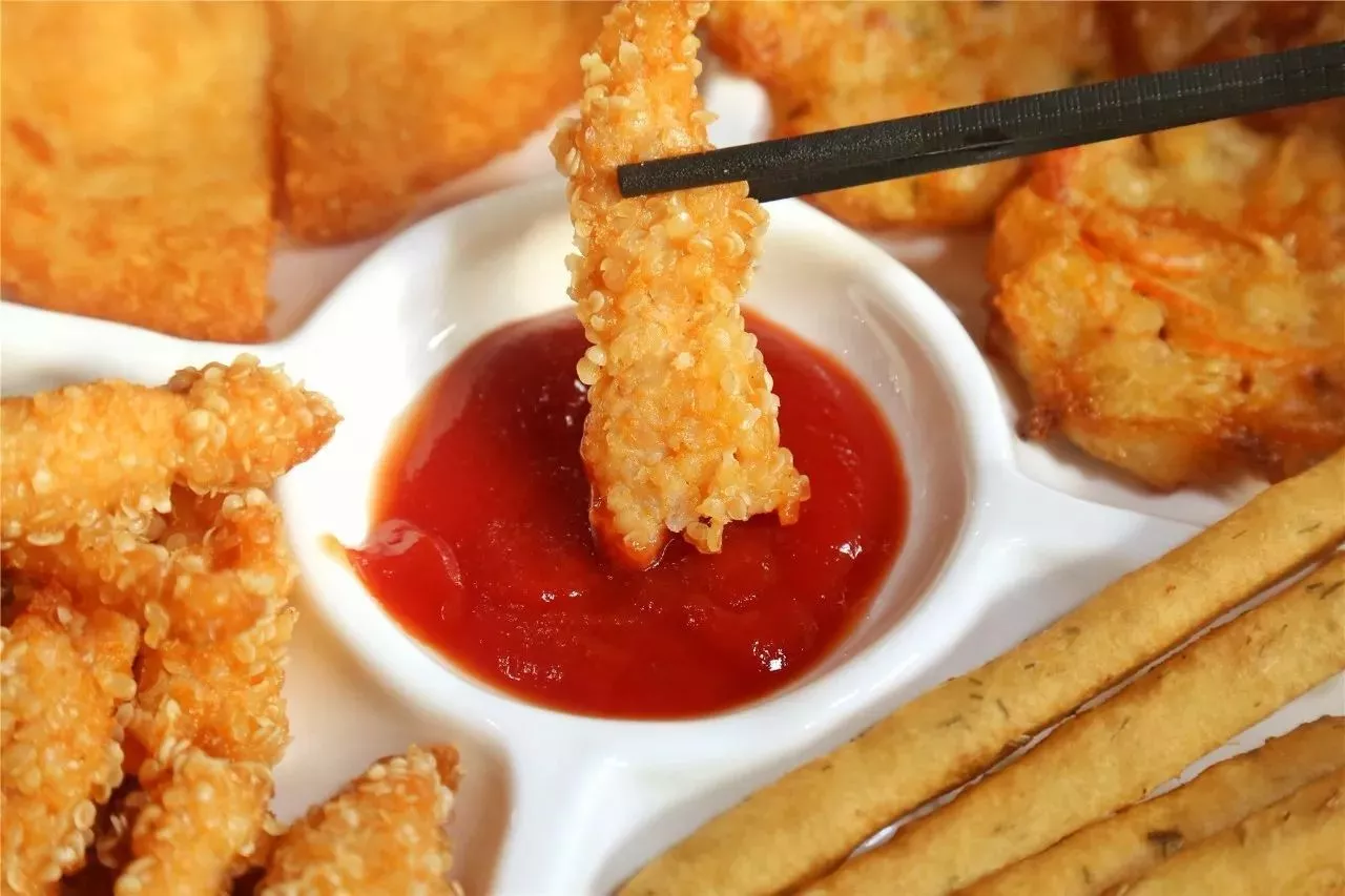 雪花排条炸得酥酥脆脆,端上来的时候趁热口感最好,蘸点番茄酱就非常美味~