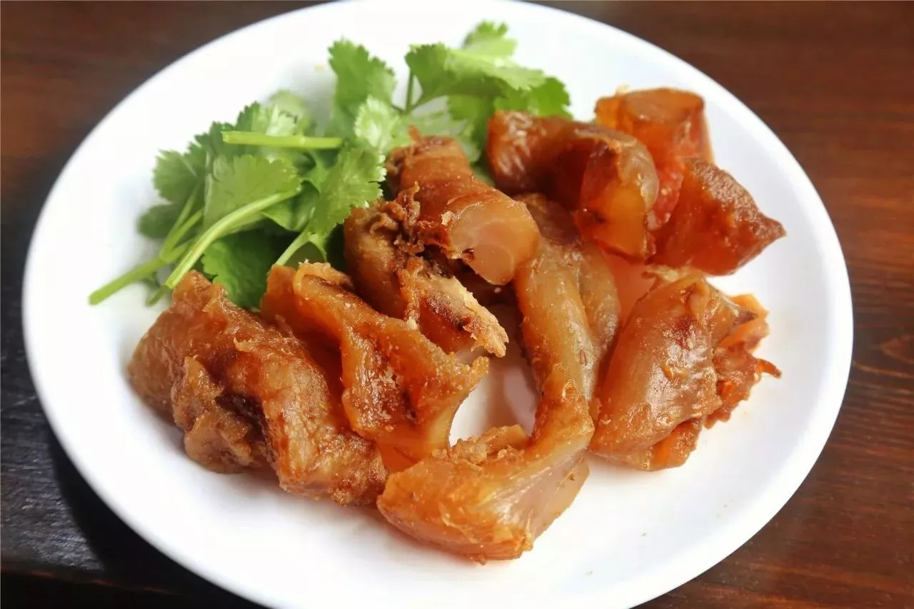 撕扯的时候劲道十足,肉质非常Q弹,卤制得已经很入味了,咸香的口感吃完还带点爽口的微辣,非常上瘾~