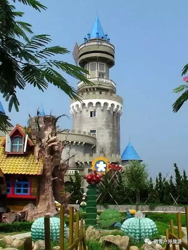 它由极具浪漫风格的古堡建筑,构成"正门城堡、环形广场、动感影院、5D影院、激光战车、大风车演播室、田园高尔夫、野外训练营、七巧板驾校、大风车餐厅"等10多个观光及参与性景点。