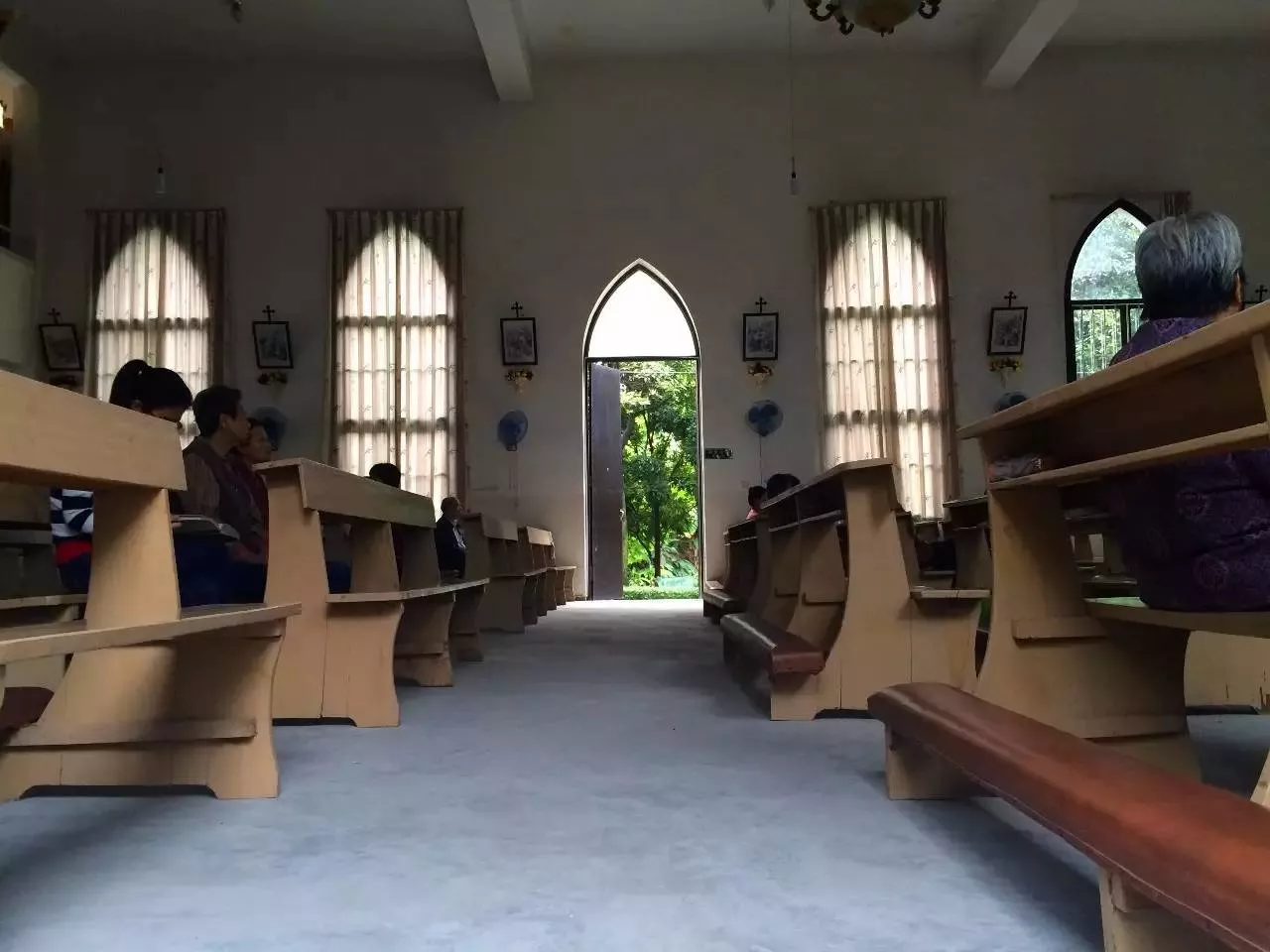 教堂里零散的坐着一些信众
