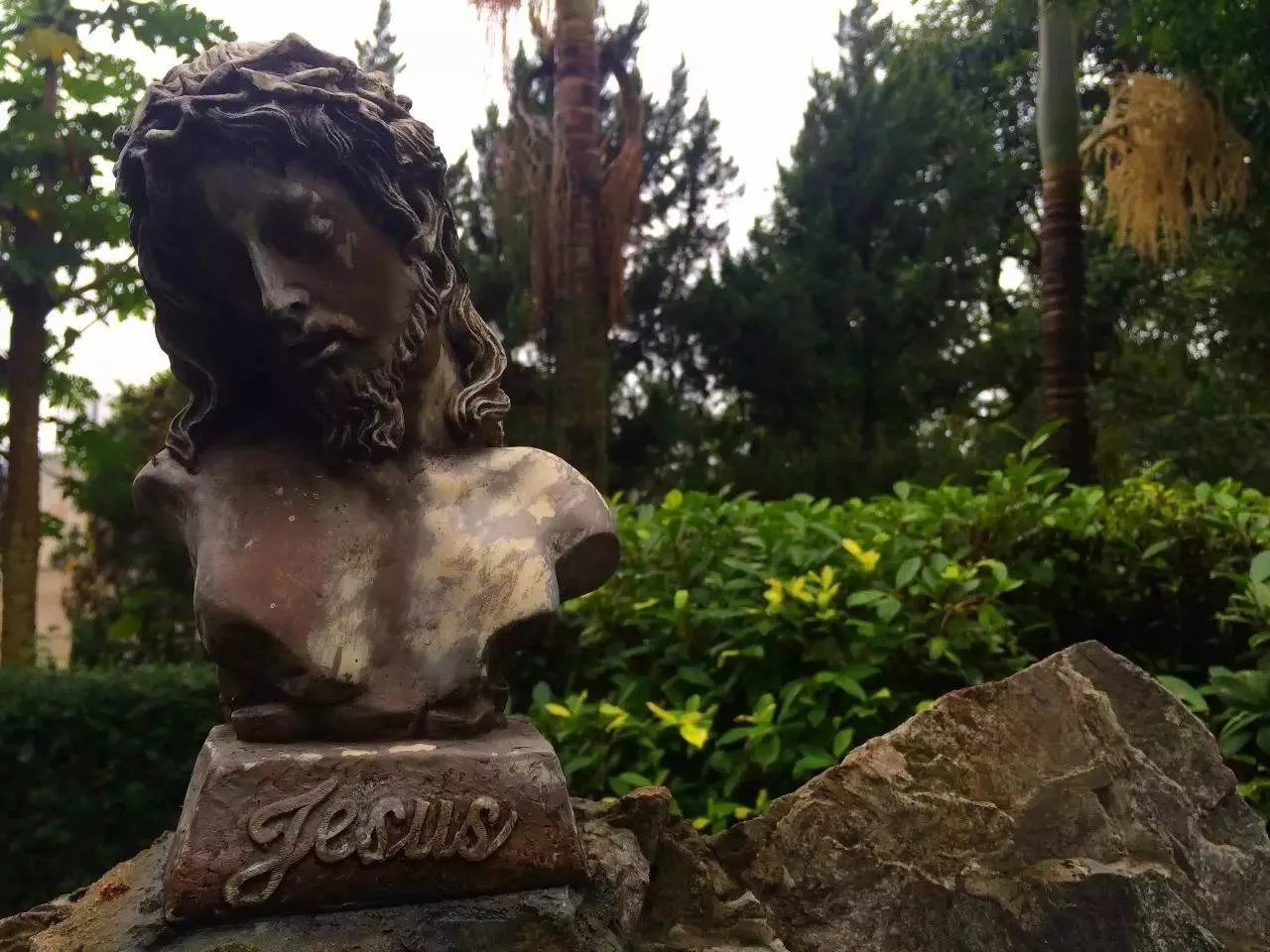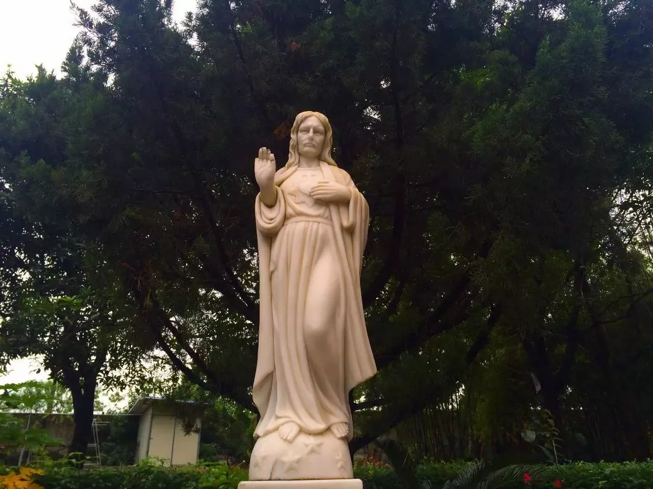 院子里有耶稣圣心像、圣母像
