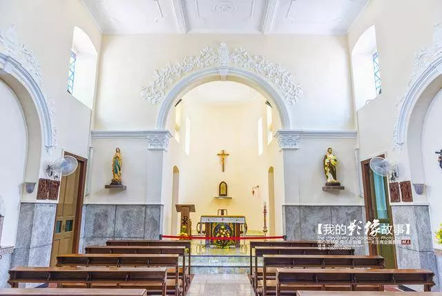 和十三年前一样,一样的街道、一样的村庄和那一样的教堂。这如同时光倒逝,仿佛看见年轻时的我,和爱人携手漫步。时景、时情如同电影般重现,我知道电影《游龙戏凤》中的外景是在位于澳门路环十月初五马路的圣方济各圣堂拍摄的,那梦一般的景色吸引着多少浪漫情怀少男少女所向往、所陶醉。而十三年后的我虽已不再是年少轻狂、风华正茂,但仍然被这美轮美奂的景色所吸引。