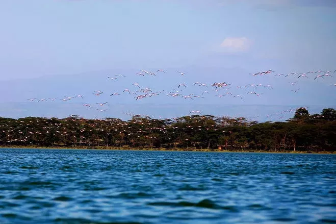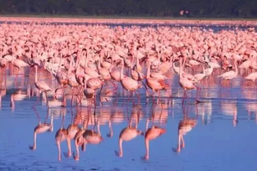 纳库鲁湖国家公园距内罗毕约200公里,占地面积188平方公里,是为保护禽鸟专门建立的公园,也是非洲第一个保护鸟类的国家公园,被誉为“观鸟天堂”。园内有约450种禽鸟,尤以火烈鸟而闻名于世。处于火山带,湖水盐碱度较高,适宜作为火烈鸟主食的浮游生物生长。约有火烈鸟200万只,占世界总量的三分之一。除鸟类之外还有如疣猴、跳兔、无爪水獭、岩狸、河马、豹子、狮子、斑马、野牛、狒狒、羚羊、鬣狗、狐狸、野猫、长颈鹿、白犀牛等大量野生动物。