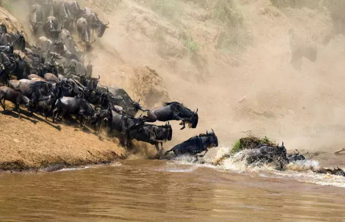 每年7至9月,成千上万的角马群将迁徙至肯尼亚马赛马拉