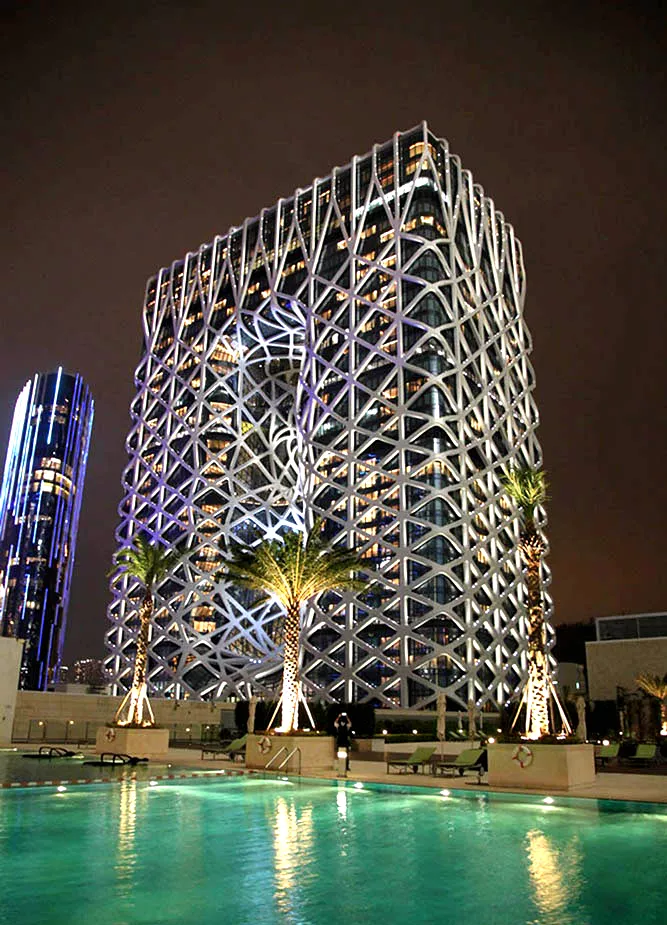 自由形态外骨骼结构的大楼,展现了奇幻优雅的姿态,而建筑中央的「8」字形镂空造型,灵感则是来自中国的玉饰。澳门摩珀斯酒店内部中庭大厅挑高35公尺,搭上透明电梯可以一览建筑内不规则几何覆面的美丽壮阔,光是建筑就已足够吸引众人目光,酒店内的餐厅、甜点店也不可小觑。