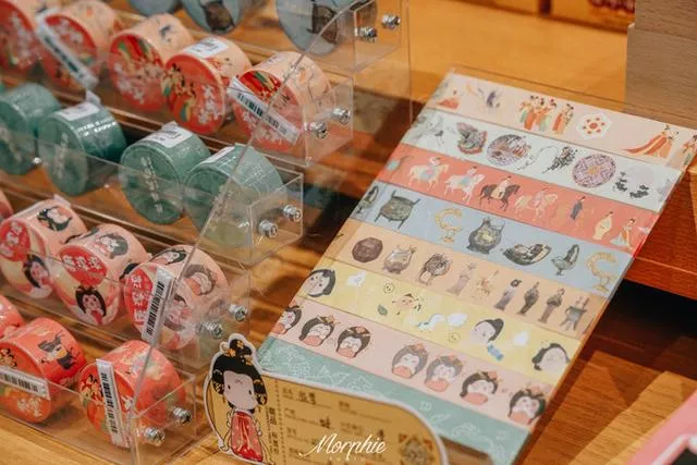 《长恨歌》演出开始前,华清宫会清场为舞台做准备。暂时离开前的最后一刻,就是文创中心里愉快的买买买时间了。华清文创充满了唐代特色,将传统文化融入到当下的生活日常,萌帝萌妃系列、手帐文具系列、生活用品系列,都设计得既实用又有趣味。而且这里还有两处高科技互动体验,可以1分钟GET川剧变脸,也可以秒换汉服,感受一次娘娘的盛装。