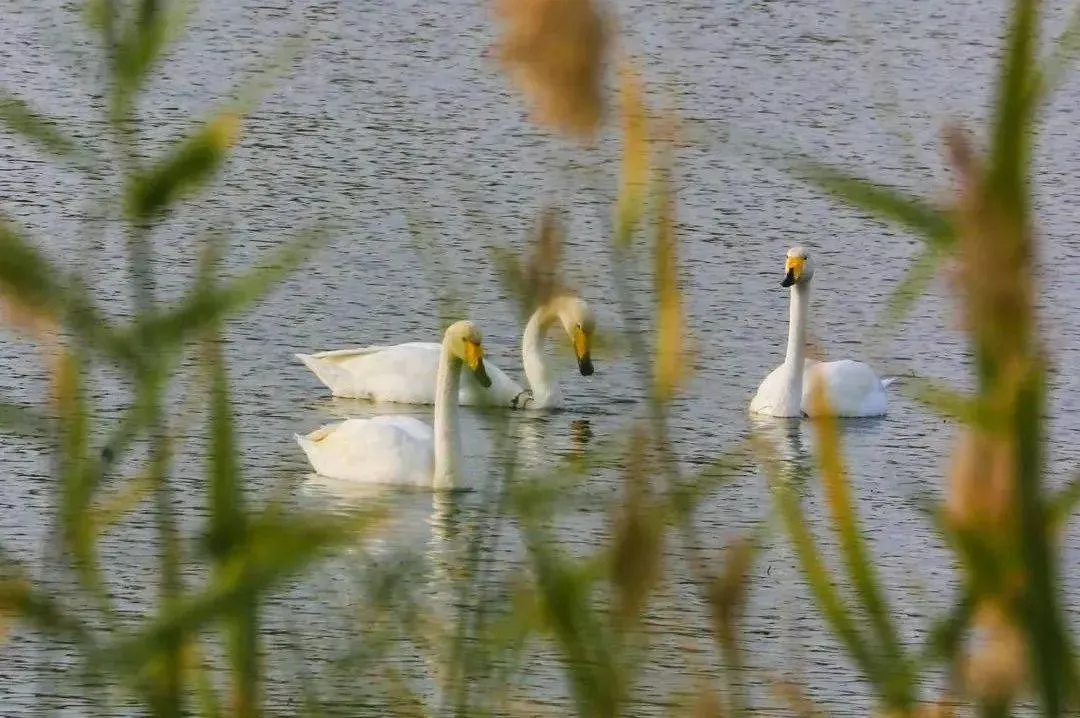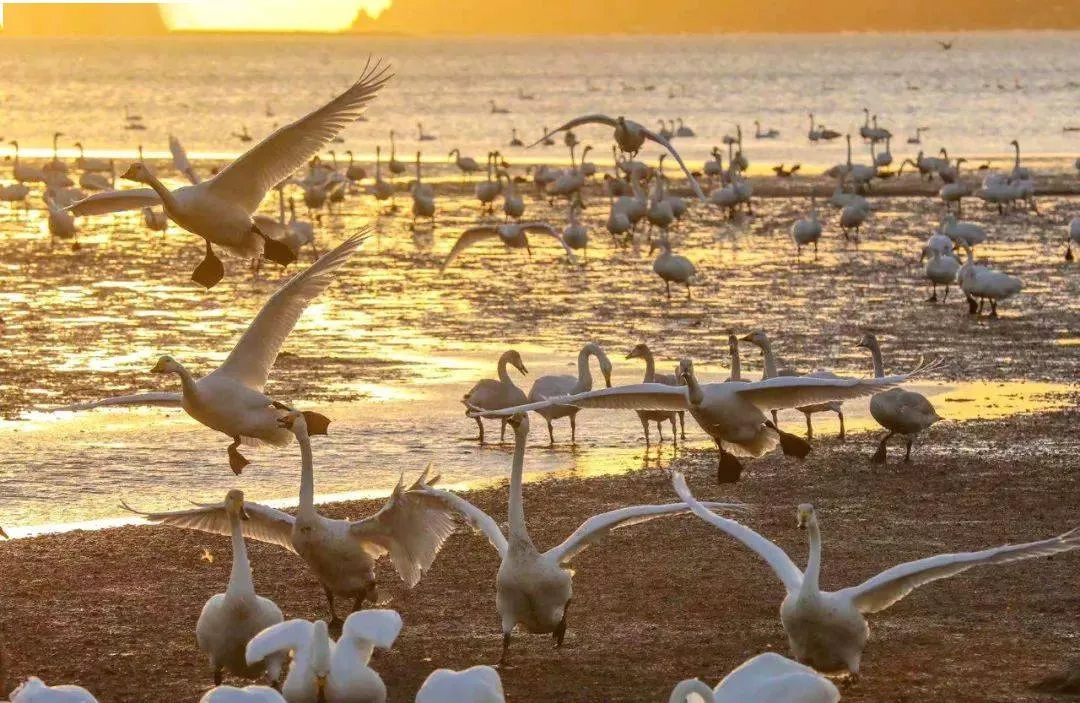 数以万计的大天鹅到运城“度假”