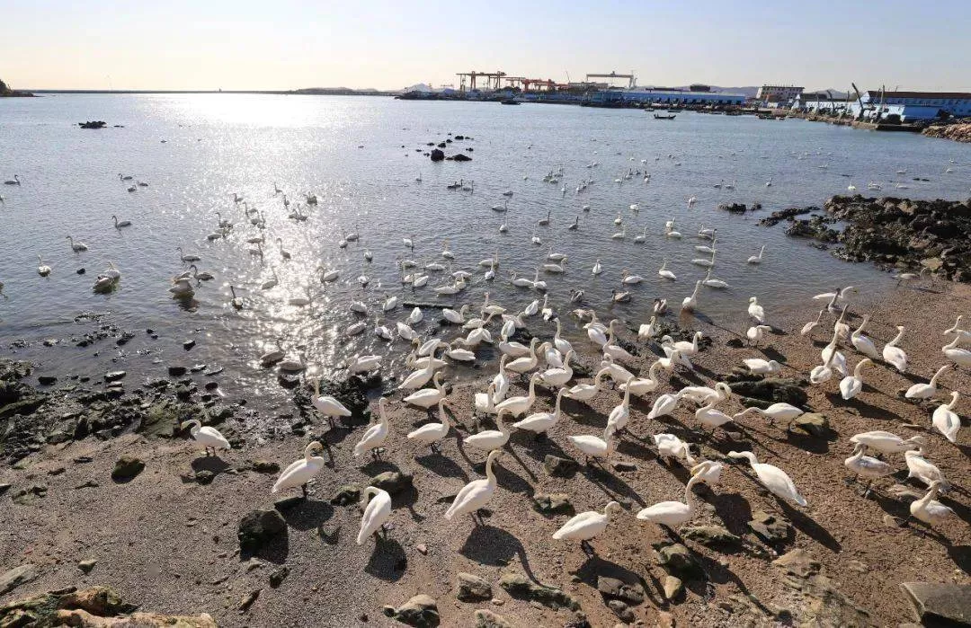 海水结冰前,飞抵荣成越冬的大天鹅能达到1万只,其中有不少是西伯利亚地区孵化出来的幼年大天鹅。