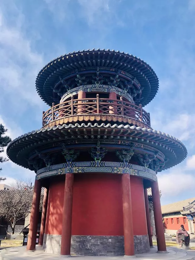 法华寺不收门票,到窗口兑换一张免费参观券就能进来了。院子宽敞干净,正面是天王殿,两边的钟鼓楼是十分罕见的圆顶阁楼,我只在北京香山见过一次这样钟鼓楼。
