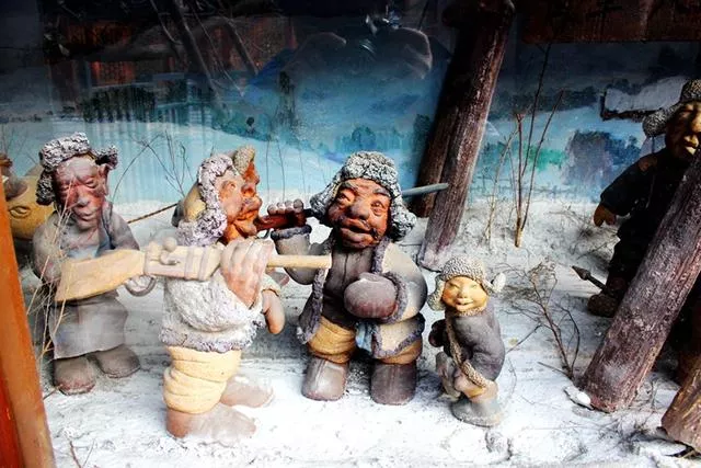赵、本、山、先生与陶艺专家汉方共同创作了一套陶俑作品,共800多件,10个场景,反映了东北生活的风土人情。早先东北各地都少不了这些地方。大车店、靠山屯、胡子窑、码头、农家乐、向阳屯、春凤镇、迎亲、刘老根大舞台、东北20怪。