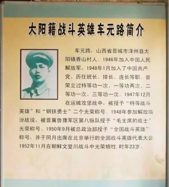 车元路——全国战斗英雄、毛主席的战士、抗美援朝英烈。解放运城、临汾的大功臣,在三打运城中表现突出!