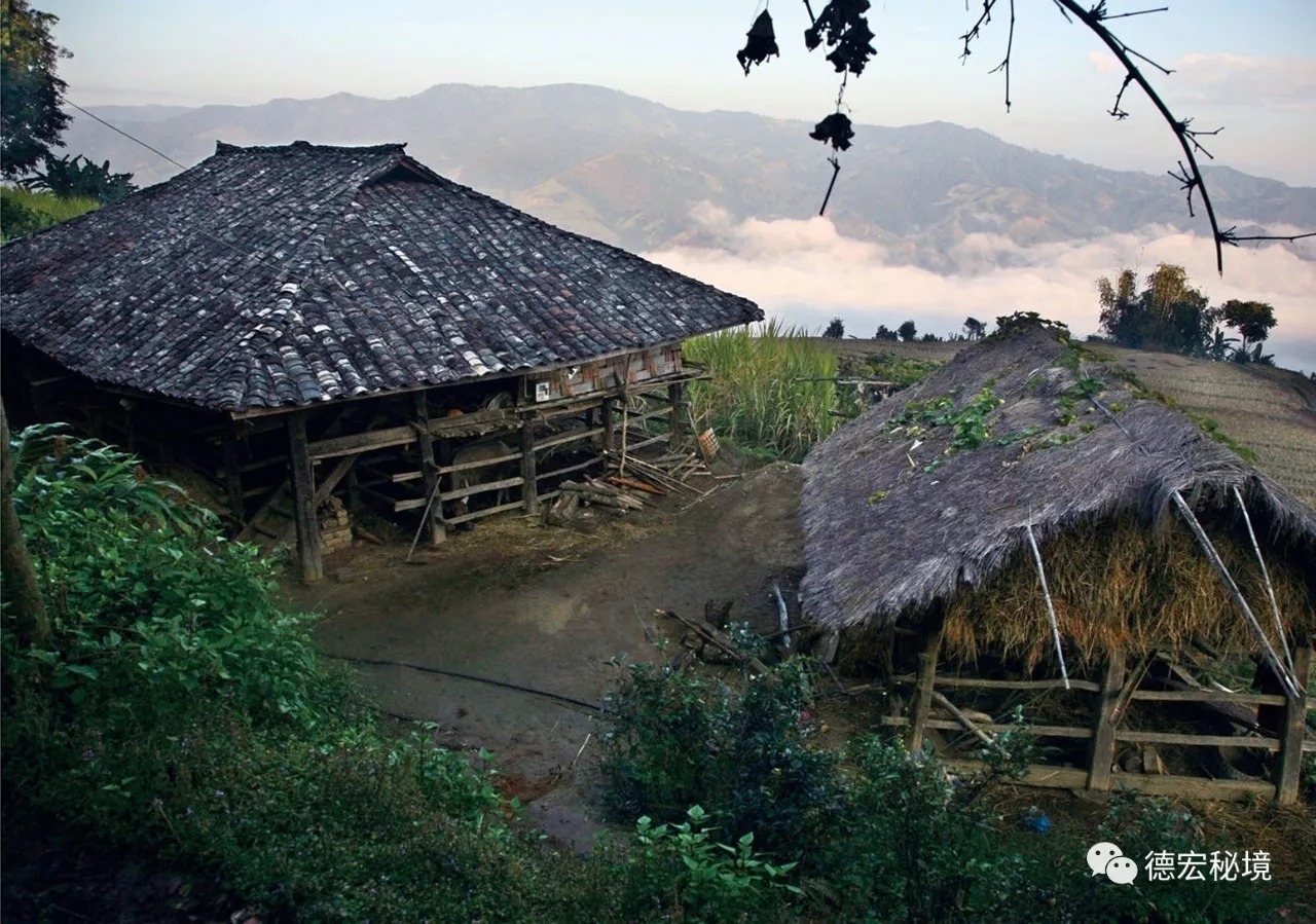 德昂族的传统民居建筑,参差错落地散布在青山绿水之间,随日出日落明暗交替,随一年四季变换容颜,在岁月中沉积故事。
