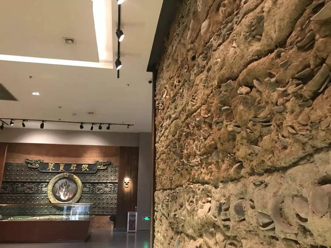▲华夏寻根展厅内的陶片文化堆积墙