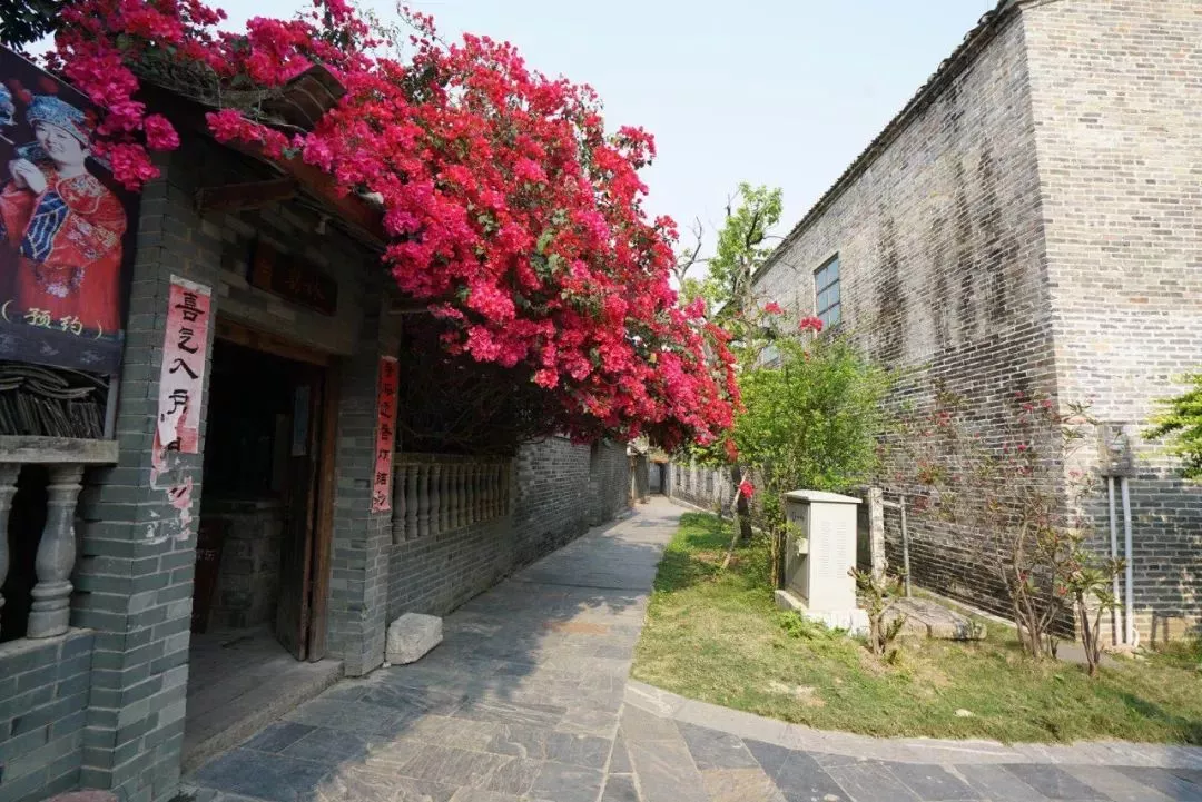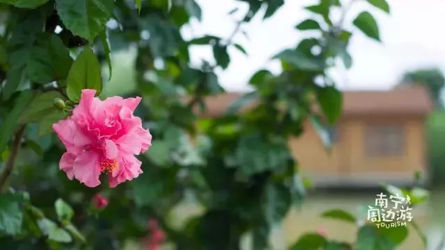 农家乐的大门口,有一株三角梅开得正旺,很多路过的游客都会驻足在这里拍照……