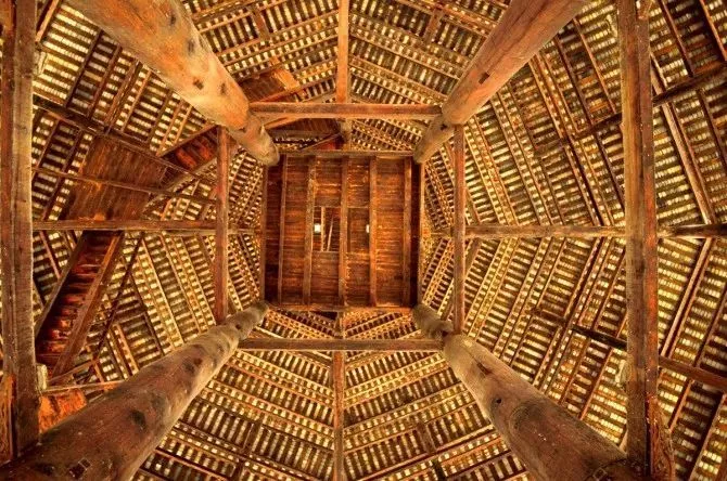 鼓楼以杉木凿榫衔接,顶梁柱拨地凌空,排枋纵横交错,上下吻合,采用杠杆原理,层层支撑而上。鼓楼通体全是本质结构,不用一钉一铆,由于结构严密坚固,可达数百年不朽不斜。
