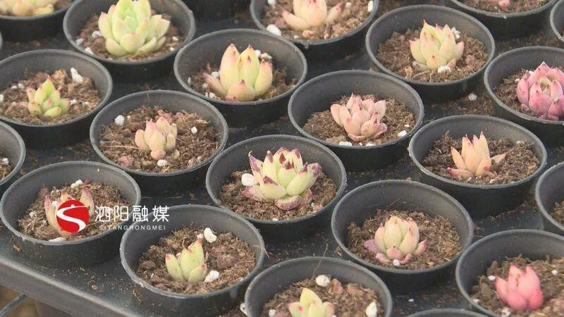 泗阳县爱园镇尚苑多肉基地负责人 李晓龙 :我们这个多肉从授粉,到采种,到播种,到成品出售大概需要六个月的时间,一年两茬。