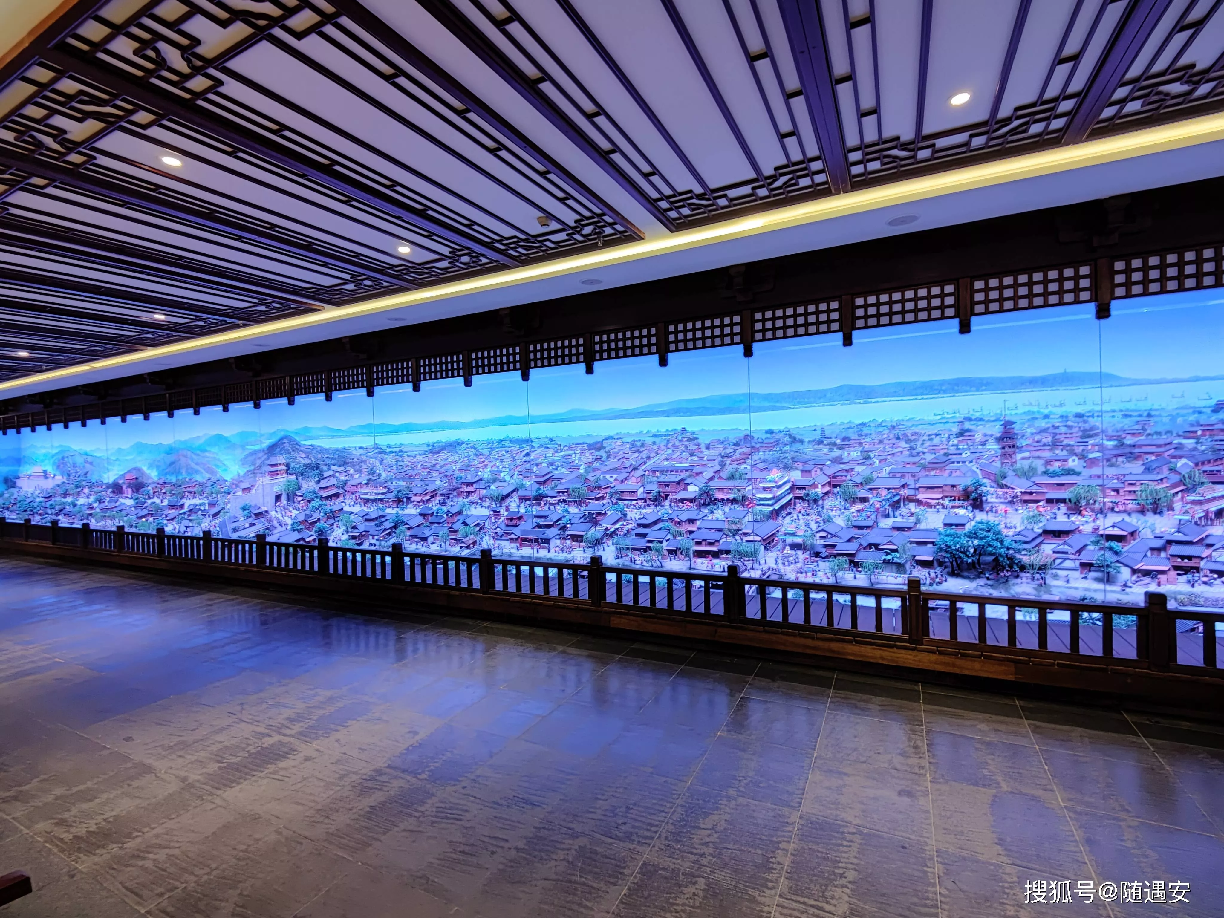 城隍阁一楼的南面,陈列展出了《南宋杭城风情图》大型“硬木彩塑画”,曾荣获中国美术百花奖一等奖。它长30余米,高3.6米,作品集雕、刻、塑、编、扎等多种传统工艺表现手法与技艺,构图上选取历史上最辉煌的南宋为时代背景,集中描绘“一色楼台三十里,不知何处觅孤山”的繁华景象,全图以南宋杭城天街(即今中山中路)为轴线,表现在春天里,杭州市民的各种民俗活动,塑造了3500个男女老少市民人物,他们个个穿戴有致,行为不同,并且按照一个个场面,聚成一组组人物。其中有取材于古代话本小说《醒世恒言》第三卷《卖油郎独占花魁》与二十二卷《十五贯戏言成巧祸》中的言情人物,也有《白蛇传》神话故事中许仙在官巷口药店当伙计的形象,可谓是戏中有戏,画中有画。